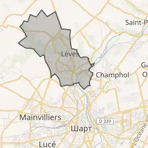 Муніципалітет розташований на відстані[2] близько 80 км на південний захід від Парижа, 75 км на північний захід від Орлеана, 2 км на північ від Шартра.