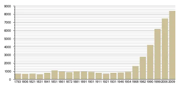 Динаміка населення (Ehess[4] і INSEE[5] ):
