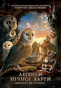 Легенди нічної варти (англ. Legend of the Guardians: The Owls of Ga'Hoole) — анімаційний мультфільм, знятий за мотивами однойменної серії книг американської письменниці Кетрін Лескі. Режисер Зак Снайдер, головних персонажів озвучують Джим Стерджес, Емілі Барклай, Джеффрі Раш. Створення фільму відбувалося в Австралії. Світова прем'єра відбулася 24 вересня 2010 року[2], в Україні — 30 вересня.[3] Фільм випущено як в RealD 3D так і в IMAX 3D. Рейтинг MPAA — PG (до 13 років тільки з батьками). Українською мовою дубльовано компанією Сінетайп. Автор українського перекладу — Сергій SKA Ковальчук.