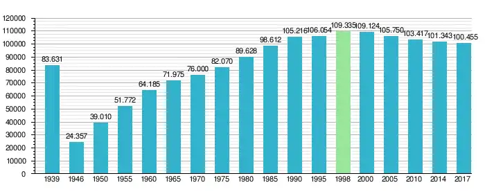 Динаміка населення міста в 1939—2017 роках.