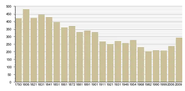 Динаміка населення (base Cassini de l'EHESS pour les nombres retenus jusque 1962[3], base Insee à partir de 1968 (population sans doubles comptes puis population municipale à partir de 2006)[4] · [5] ):