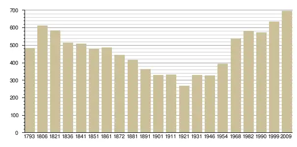 - Insee : historique des populations par commune depuis le recensement de 1962, наведено за французькою вікіпедією