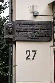 - Пам'ятна таблиця Миколі Лемику на фасаді будинку, що на вул. Котляревського, 27 у місті Львові, де він убив Майлова.