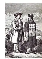На бруслик носили також чугу — рід плаща темно-бронзового кольору до колін з оздобленим каптурем. Пелерина була оздоблена висячими тороками — свічками. Каптур (пелерина) був довгий, обшитий білим шнурком і розшитий чорними нитками. Чугу одівали тільки на плечі, рукава були зашиті. Рукава мали також тороки.