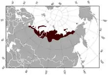 Поширений в зоні Палеарктичної тундри від Білого моря до Колими (Росія). Трапляється також на островах Новий Сибір і Врангеля. Максимальної щільності популяції досягають у низинній тундрі зі значним мохом і осокою. Поширений також на заболочених угіддях на передгір'ях чагарникової тундри і на заболочених ділянках на околицях лісової зони[2].