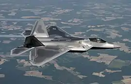 ![]() Багатоцільовий винищувач F-22 Raptor з авіабази Ленглі. 12 травня 2005 | ||||