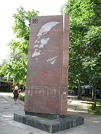 Пам'ятний знак на честь народження Леніна перед входом до Центрального скверу в Кіровограді. Червень 2009 року