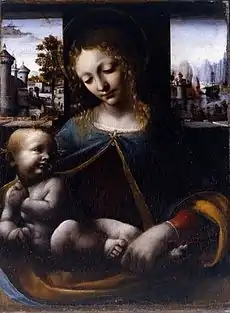 Леонардо да Винчи був «…готовий навіть співрацювати з власними учнями, правити своїм геніальним пензлем їх твори, аби дати їм майстерності вище і вишуканіше, ніж могли вони самі, ці люди люди його школи, Больтраффіо, де Предіс, д'Оджоне, да Сесто і т. ін., — порода талантів малих або посередніх. Він дарує ім трафарети власних композицій, начерки власних імпровізацій: таким було походження цілої низки „леонардесків“, сумнівних полотен, котрим колись наївная традиція (знавців) давала им'я самого майстера, а викривлений критицизм 19 століття (навпаки) відмовляв їм у всякому контакті з Леонардо».