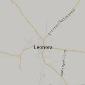Леонора розташована на захід від Великої пустелі Вікторія майже у центрі штату.
