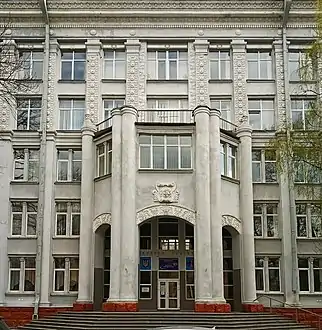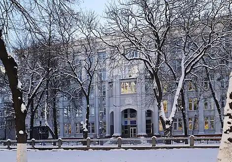 Оскільки стара споруда вже не відповідала потребам навчального процесу, 1949 року на ділянці колишньої Другої гімназії, що на розі вулиці Леонтовича й бульвару Шевченка (№ 11/18), розпочали зводити новий навчальний корпус за проєктом архітекторів Віктора Єлізарова й Аріадни Лободи. Будівництво, яке тривало сім років, завершили у 1956 році[3][4].