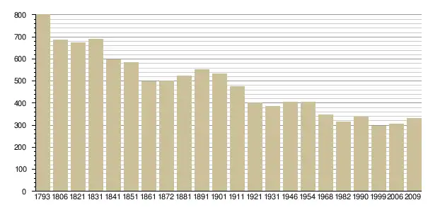 Динаміка населення (base Cassini de l'EHESS pour les nombres retenus jusque 1962[3], base Insee à partir de 1968 (population sans doubles comptes puis population municipale à partir de 2006)[4] · [5] ):