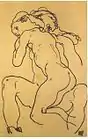 Егон Шиле, Дві жінки-ню, що обіймаються, малюнок, 1919 рік