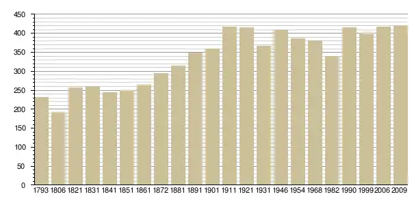 Динаміка населення (base Cassini de l'EHESS pour les nombres retenus jusque 1962[3], base Insee à partir de 1968 (population sans doubles comptes puis population municipale à partir de 2006)[4] · [5] ):