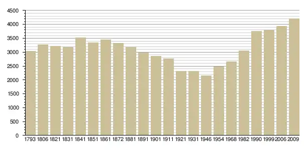 Динаміка населення (base Cassini de l'EHESS pour les nombres retenus jusque 1962[3], base Insee à partir de 1968 (population sans doubles comptes puis population municipale à partir de 2006)[4] · [5] ):