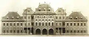 У 1850-ті двоповерховий колись палац надбудували третім поверхом. Тепер про первісну стилістику бароко нагадувала лише парадна брама у вигляді Триумфальної арки, що повністю втратила декор. Розкішний колись бароковий палац набув вигляду казенної споруди пізнього класицизму. Як казенне приміщення він і використовувався.