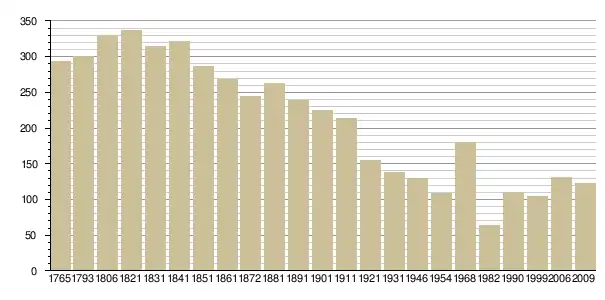 Динаміка населення (Baratier, Duby & Hildesheimer pour l’Ancien Régime ; Insee[3], EHESS[4] pour les chiffres issus des recensements légaux ):