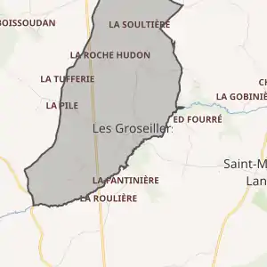 - Розташування муніципалітету Ле-Грозеє на мапі Франції та сусідні муніципалітети