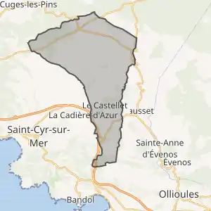 Муніципалітет розташований на відстані[2] близько 690 км на південний схід від Парижа, 35 км на схід від Марселя, 16 км на північний захід від Тулона.