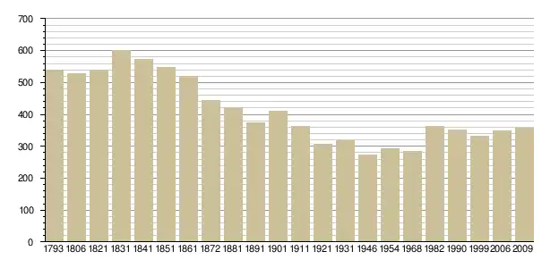 Динаміка населення (base Cassini de l'EHESS pour les nombres retenus jusque 1962[3], base Insee à partir de 1968 (population sans doubles comptes puis population municipale à partir de 2006)[4] · [5] ):