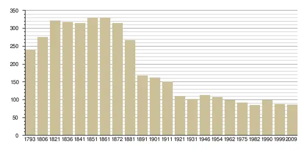 - Insee : historique des populations par commune depuis le recensement de 1962, наведено за французькою вікіпедією