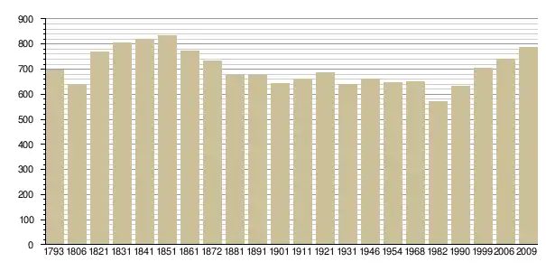 Динаміка населення (base Cassini de l'EHESS pour les nombres retenus jusque 1962[3], base Insee à partir de 1968 (population sans doubles comptes puis population municipale à partir de 2006)[4] · [5] ):