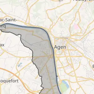 Муніципалітет розташований на відстані[2] близько 540 км на південь від Парижа, 120 км на південний схід від Бордо, 2 км на захід від Ажена.