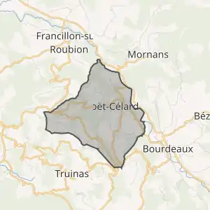 Муніципалітет розташований на відстані[2] близько 520 км на південний схід від Парижа, 135 км на південь від Ліона, 45 км на південний схід від Валанса.