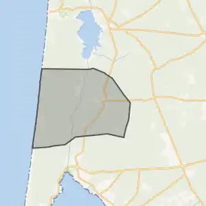Муніципалітет розташований на відстані[2] близько 520 км на південний захід від Парижа, 45 км на захід від Бордо.