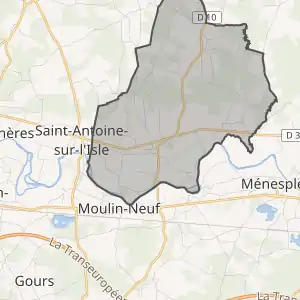 Муніципалітет розташований на відстані[2] близько 460 км на південь від Парижа, 55 км на схід від Бордо, 55 км на захід від Періге.