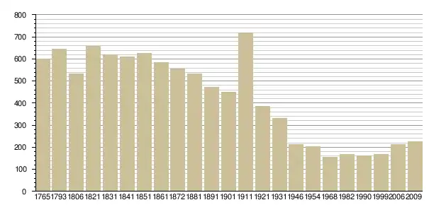 Динаміка населення (Baratier, Duby & Hildesheimer pour l’Ancien Régime ; Insee[3], EHESS[4] pour les chiffres issus des recensements légaux ):