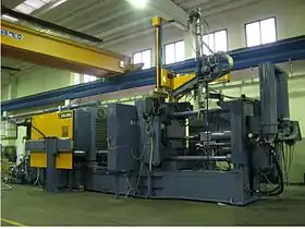 У ливарних машинах з холодною камерою пресування розплавлений сплав (алюмінієвий, магнієвий або мідний) заповнює прес-форму під тиском від 35 до 700 МПа.