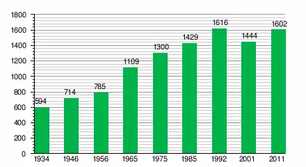 За даними перепису населення 2011 року у селі проживали 1602 особи.