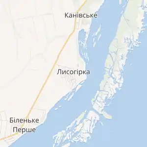 Село Лисогірка знаходиться на правому березі річки Дніпро, вище за течією на відстані 2 км розташоване село Канівське, нижче за течією на відстані 2,5 км розташоване село Біленьке Перше. Поруч проходить автомобільна дорога Т 0806.