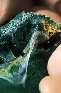 ![]() Імаго, гусінь та лялечка шкідника | ||||||||||||||||||||||||||||||||||