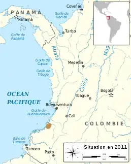 Мешкає на південному заході Колумбії.