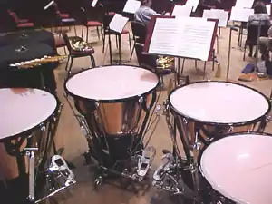 У партитурі для симфонічного оркестру партія литавр пишеться нижче партій мідних духових та вище партій решти ударних інструментів.