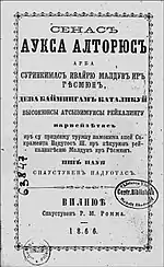 Два випуски одного і того ж молитовника «Старий золотий вівтар». Той, що зліва, виданий у 1864 році латиницею і був нелегальний. Той, що праворуч, виданий у 1866 році кирилицею, був офіційний та оплачений владою | ||