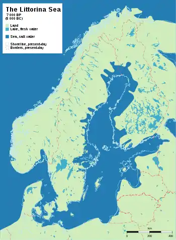 Литоринове море зазнало період трансгресії та максимальної солоності протягом теплого атлантичного періоду. В оптимальний період приблизно 4500 років тому, море містило вдвічі більший обсяг води і охоплювало на 26,5 % більше площі, ніж сьогодні. Наприкінці цього періоду утворився сучасний рельєф, в тому числі лагуни, коси, і дюни.