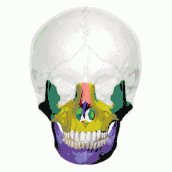 ![]() Анімаційне зображення черепа людини. (кістки мозкового черепа показані напівпрозорим)