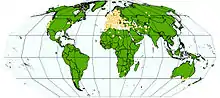 - Східна Європа: Білорусь; Російська Федерація — Європейська частина; Україна (вкл. Крим)