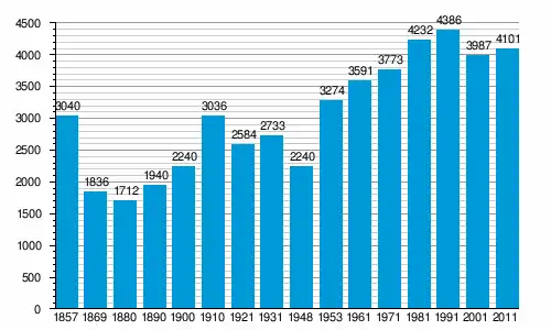 Населення громади за даними перепису 2011 року становило 4 101 осіб[1], 4 з яких назвали рідною українську мову[2]. Населення самого поселення становило 3336 осіб.[1]