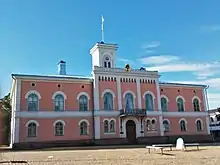 ![]() Автостанція Ловійси, один із небагатьох довоєнних фінських автовокзалів, який зберігся до наших днів | ![]() Ратушна площа Ловійси | ![]() Міська ратуша, збудована у 1862 році за проєктом архітектора Теодора Шевітца |