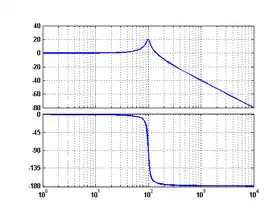 У разі наявності комплексно-сполучених нулів або полюсів необхідно використовувати ланки другого порядку, {\ displaystyle x ^ {2} + ax + b} {\ displaystyle x ^ {2} + ax + b}, нахил змінюється в точці {\ displaystyle { \ sqrt {b}}} {\ sqrt {b}} відразу на {\ displaystyle (40 \ cdot a_ {n})} (40 \ cdot a_ {n}) дБ на декаду.