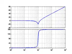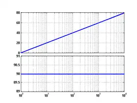 обнулити нахил знову коли фаза зміниться на {\ displaystyle 90 \ cdot a_ {n}} 90 \ cdot a_ {n} градусів для простого нуля або полюса і на {\ displaystyle 180 \ cdot a_ {n}} 180 \ cdot a_ {n } градусів для комплексно-сполученого нуля або полюса,