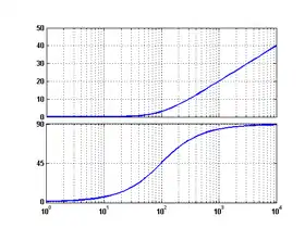 Подання АЧХ в логарифмічному масштабі спрощує побудова характеристик складних систем, так як дозволяє замінити операцію множення АЧХ ланок складанням, що випливає з властивості логарифма: