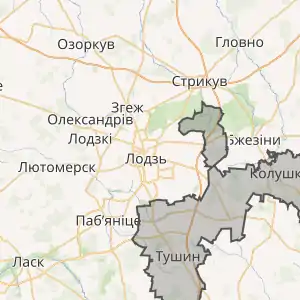 Повіт знаходиться у центральній частині воєводства. Адміністративний центр — місто Лодзь (не входить до складу повіту). Станом на 1.01.2008 населення становить 65 368 осіб, площа 499,76 км².