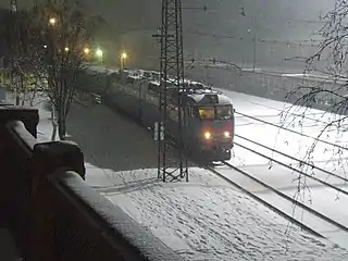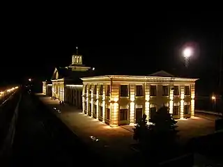 ![]() Залізничний вокзал станції Лозова вночі. Вигляд з Севастопольської платформи | |