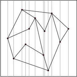 - Edelsbrunner, Herbert; Guibas, Leonidas J.; Stolfi, Jorge (1986). Optimal point location in a monotone subdivision. SIAM Journal on Computing 15 (2): 317–340. doi:10.1137/0215023.