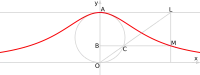 - В околі вершини локон наближається до кола діаметра . У точці відбувається дотик, і крива збігається з колом. Це показує значення радіуса кривини в точці : .