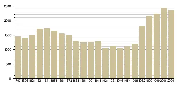 Динаміка населення (base Cassini de l'EHESS pour les nombres retenus jusque 1962[3], base Insee à partir de 1968 (population sans doubles comptes puis population municipale à partir de 2006)[4] · [5] ):